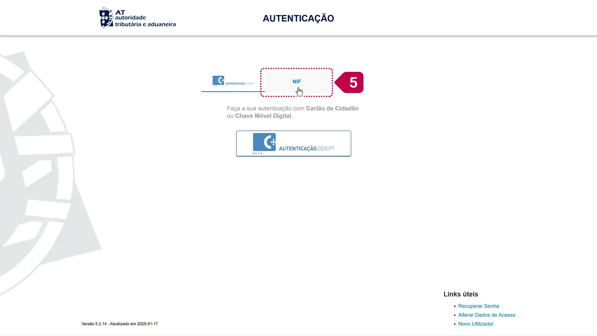 - Credenciais de acesso: NIF e senha de utilizador do Portal das Finanças.