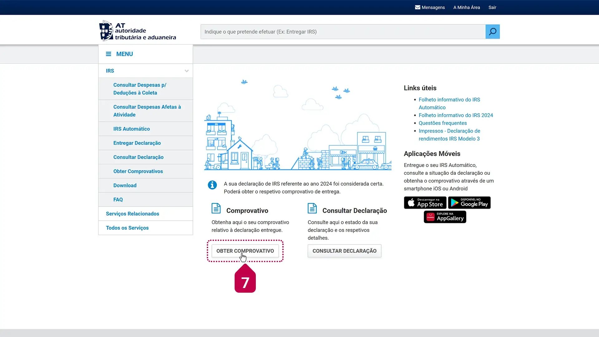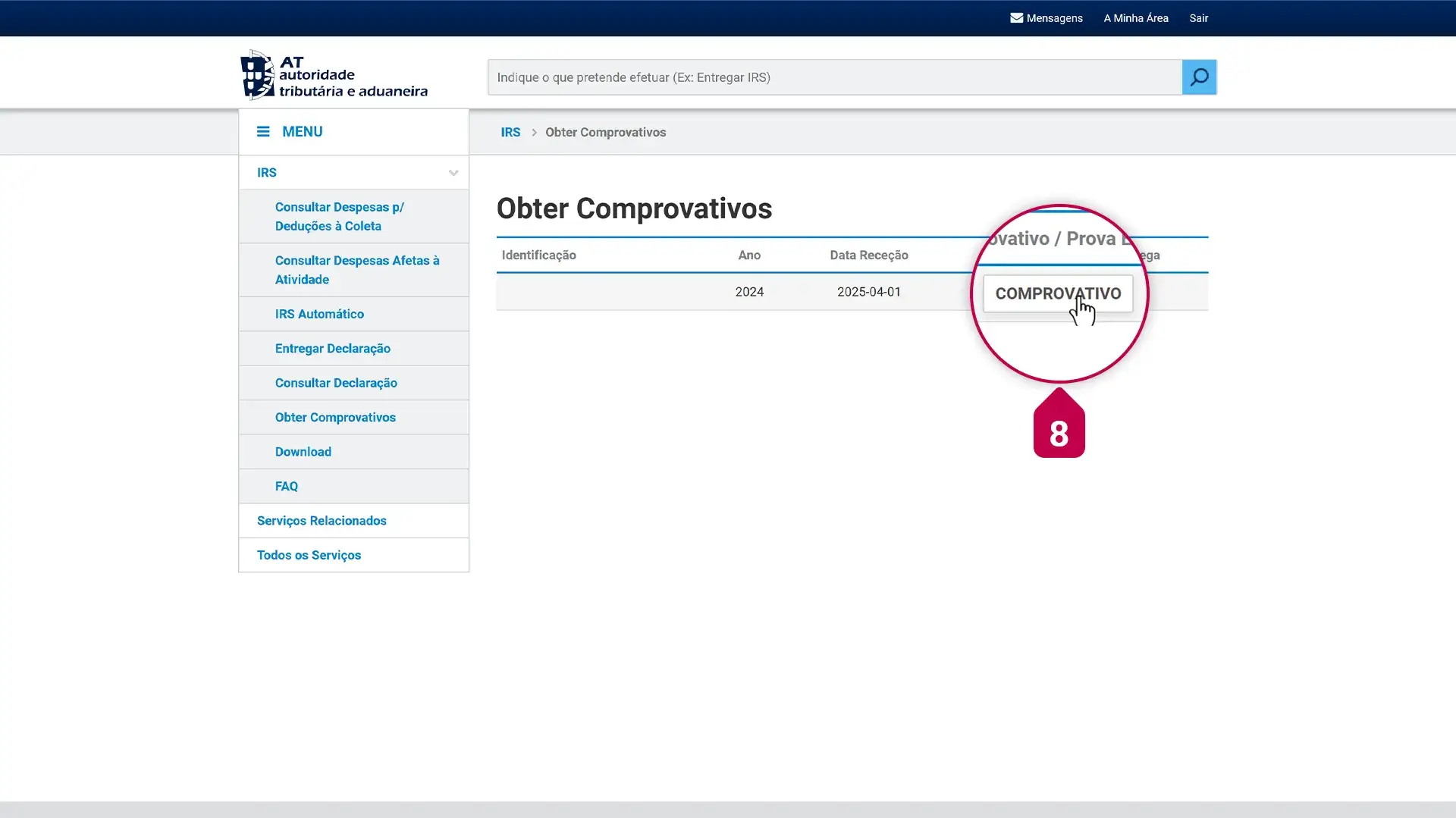 - Na área de “IRS”, onde está escrito “Comprovativo”, clicar em “Obter comprovativo”.