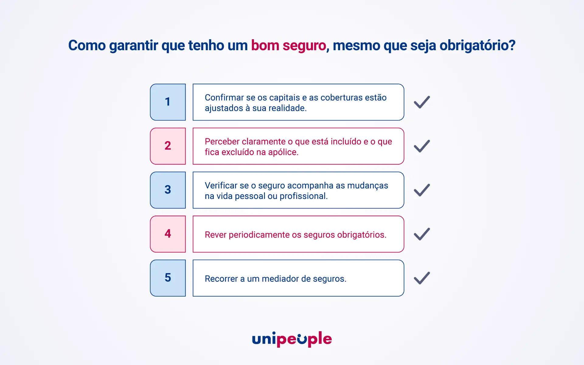 No que respeita aos seguros obrigatórios, cumprir a lei é apenas o primeiro passo. Compreender as coberturas e garantir que estão ajustadas à sua situação faz toda a diferença na proteção do dia a dia, e é precisamente aqui que o apoio de um mediador de seguros, como a UniPeople, pode ajudar a tomar decisões mais informadas.
