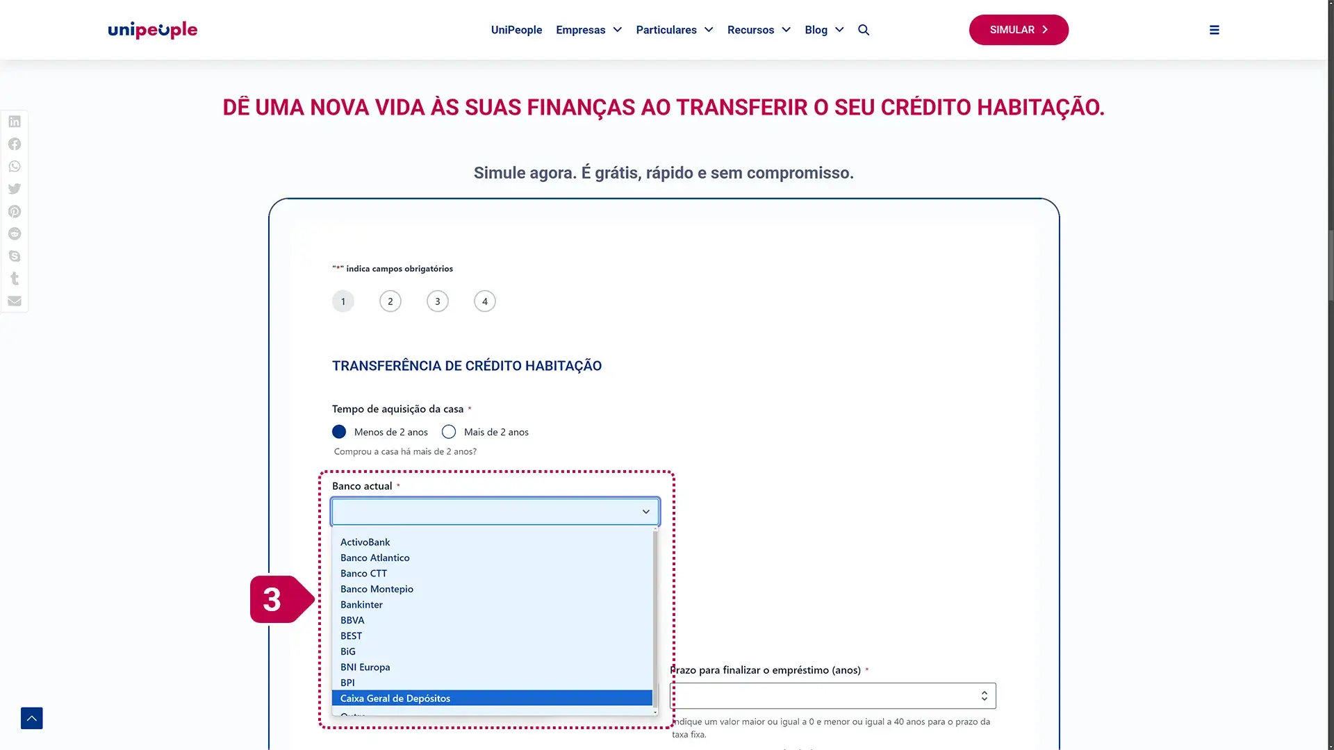 Estas são as etapas para transferir o crédito habitação online com a UniPeople: