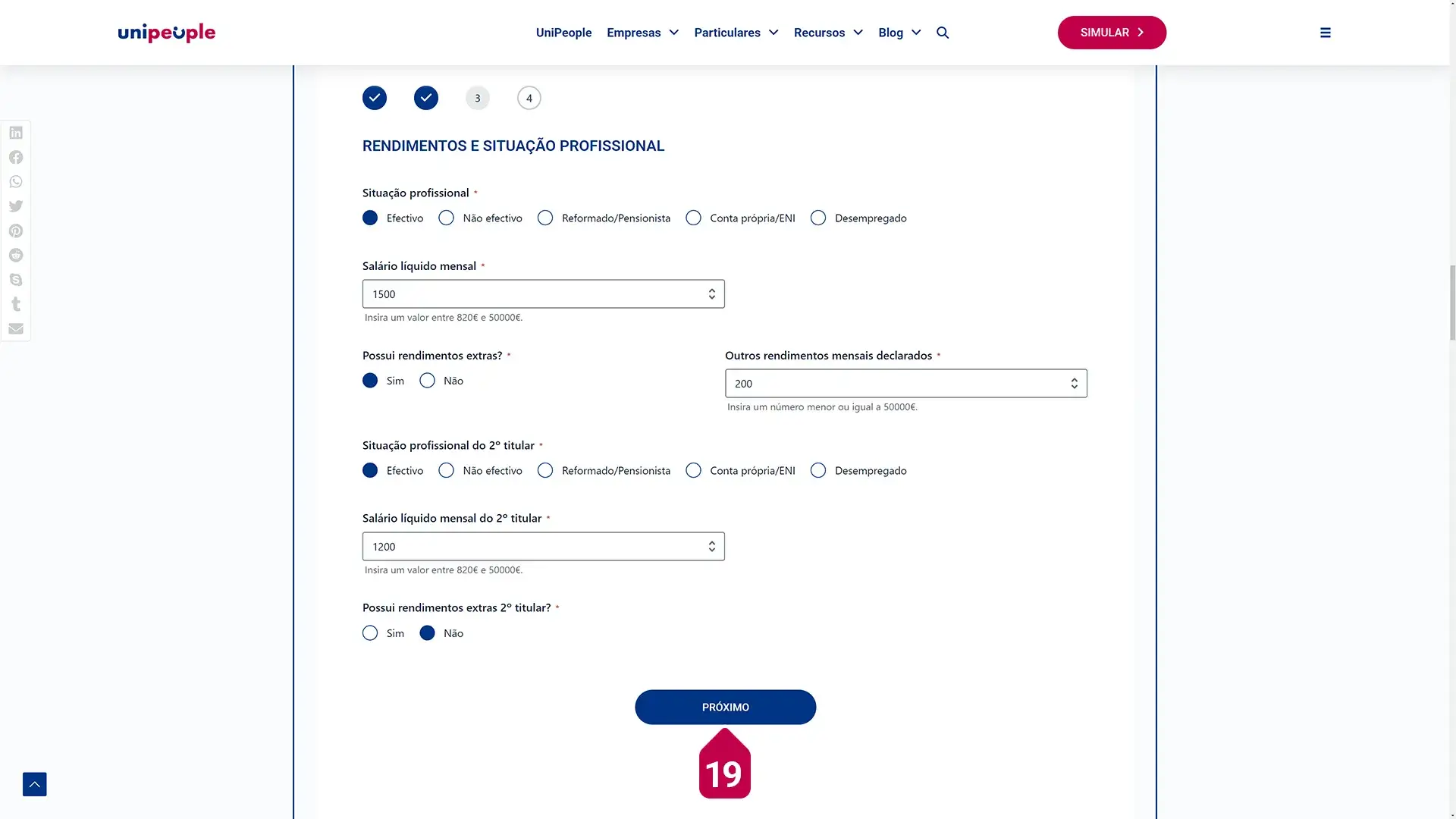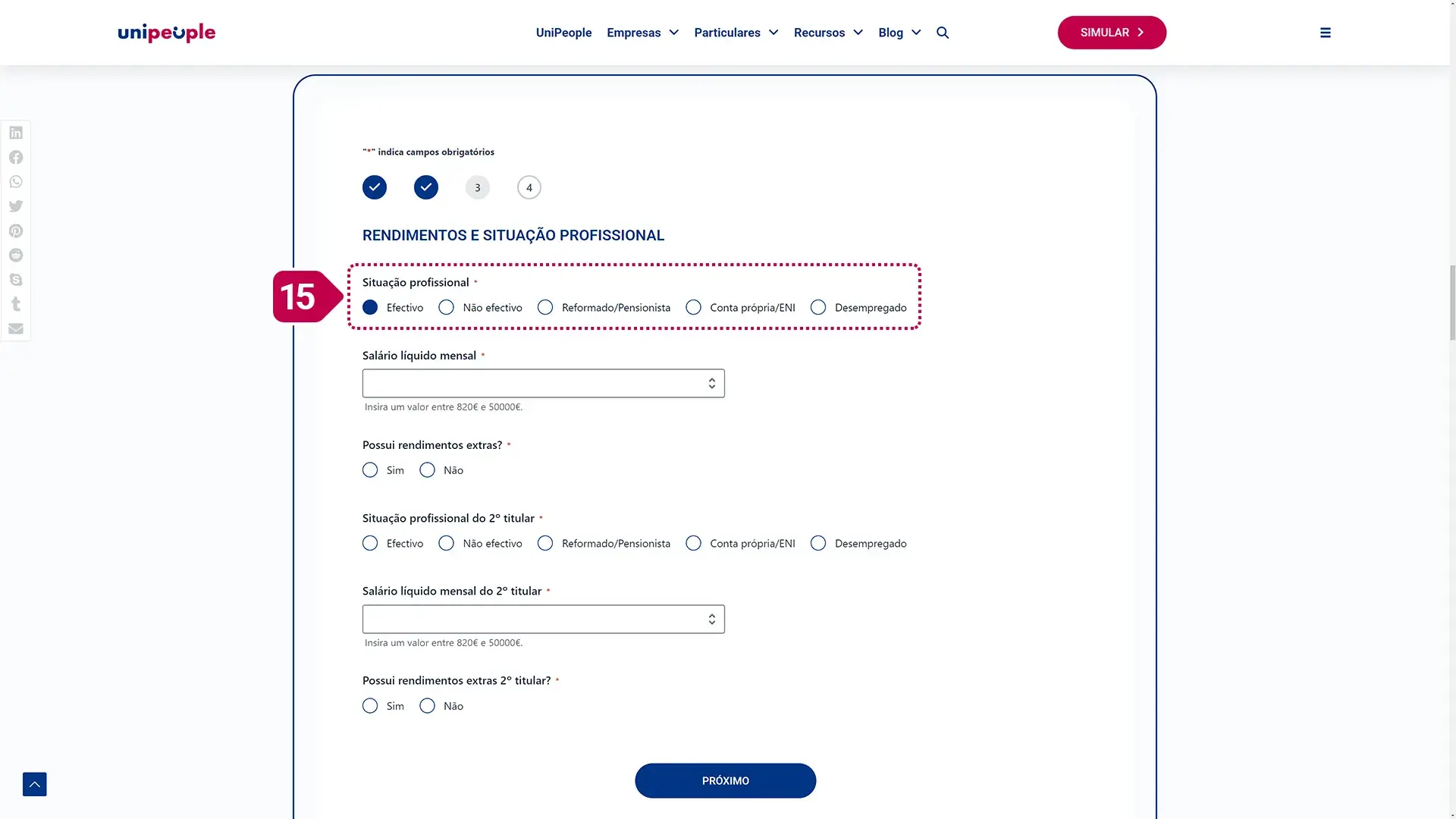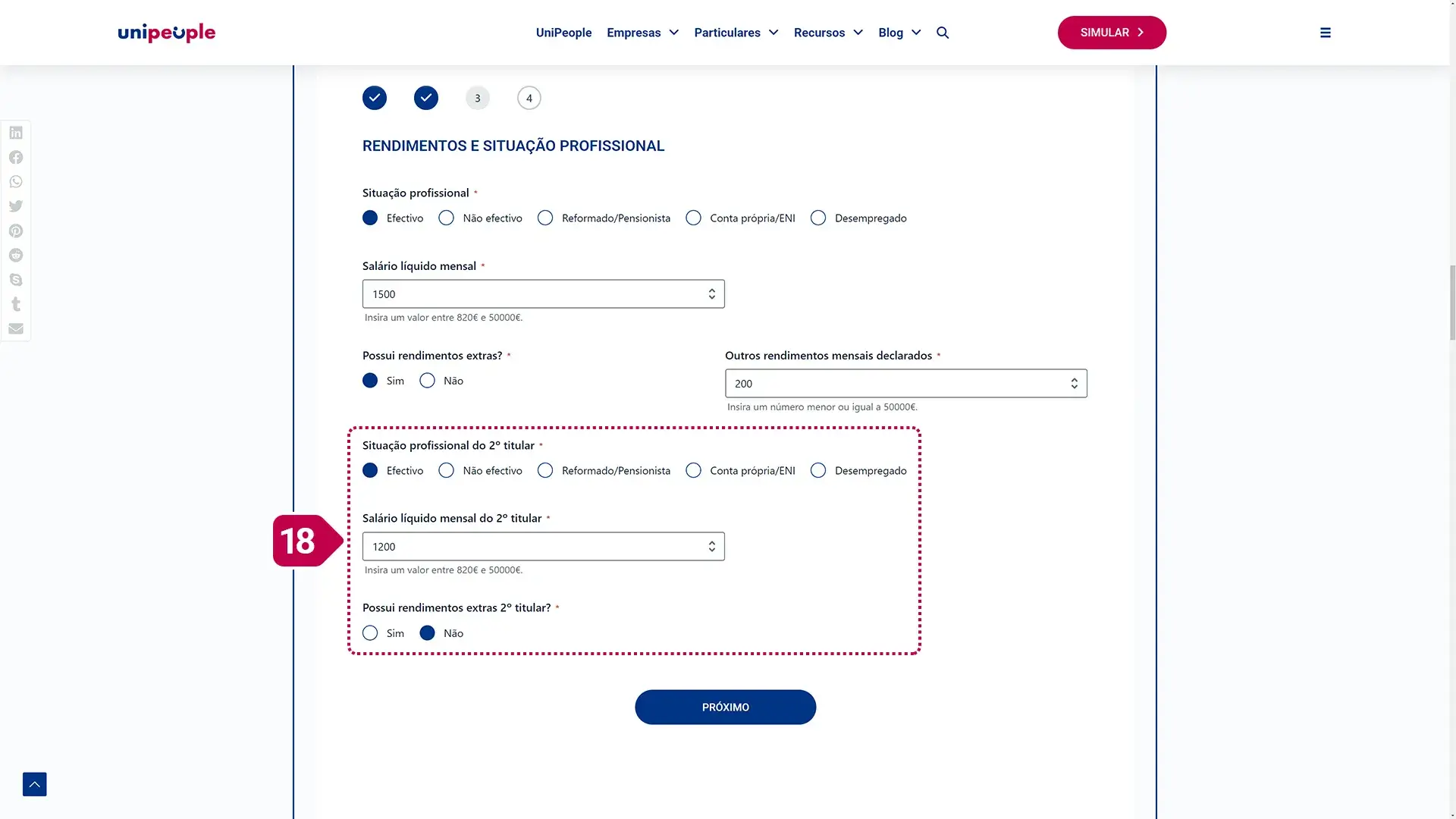 A seguir, vamos explorar cada uma das etapas do simulador e mostrar-lhe como preencher cada campo corretamente.