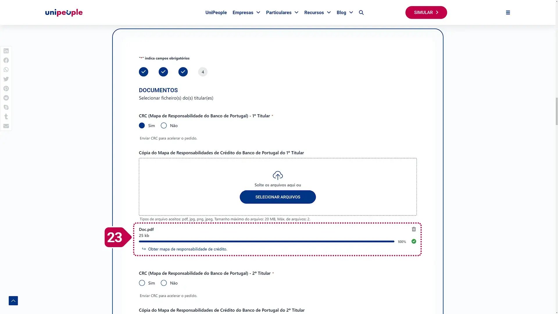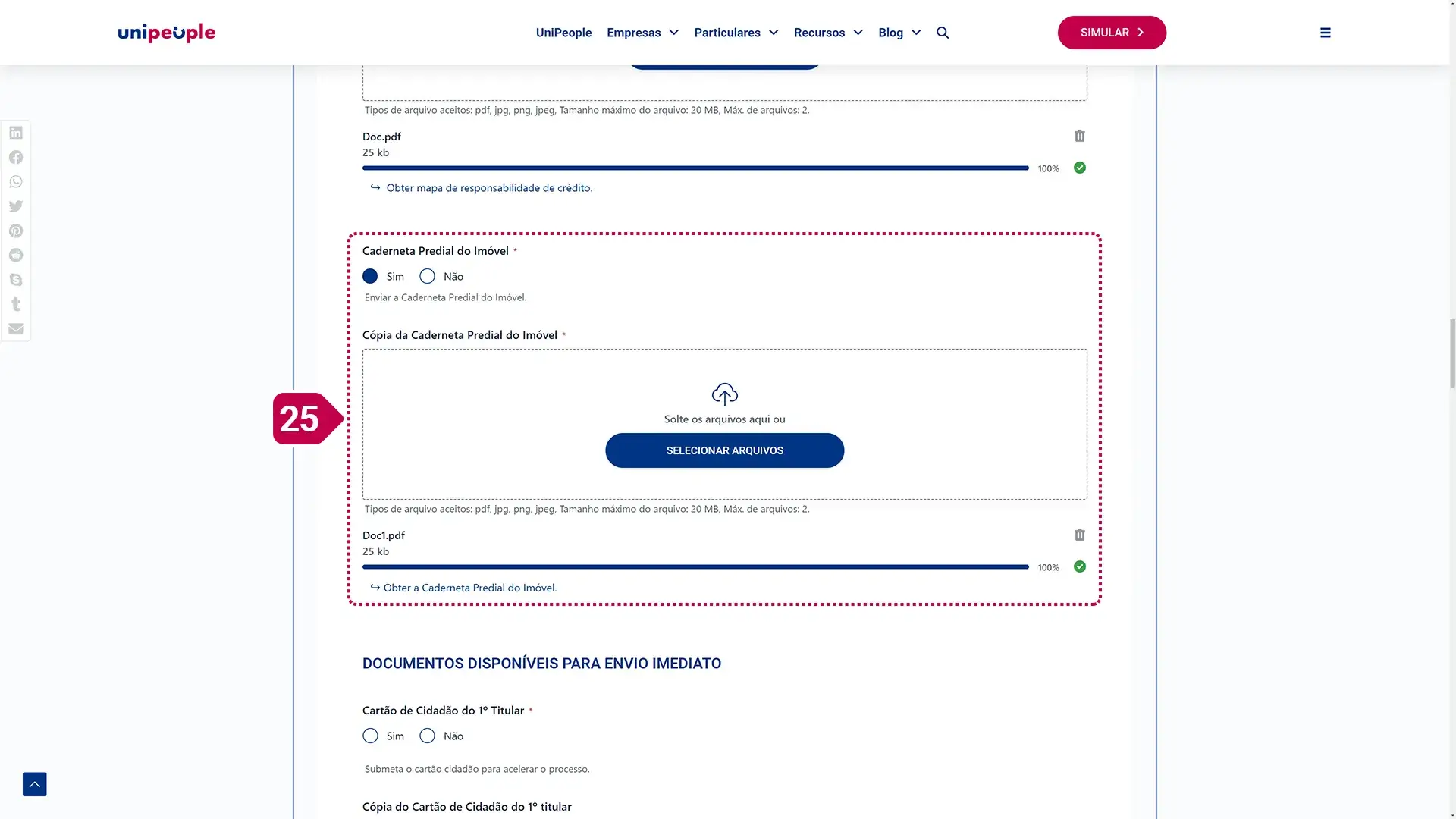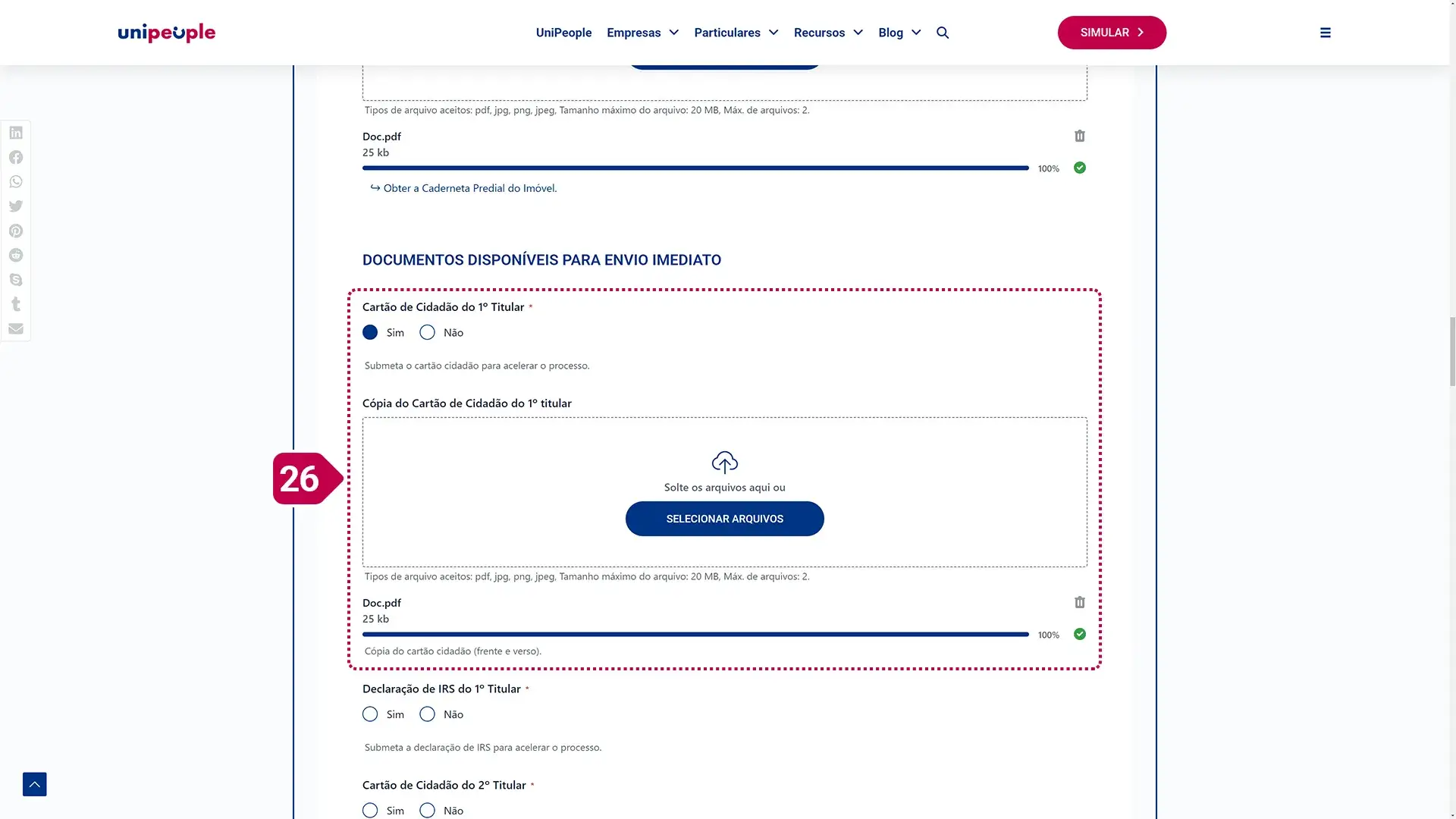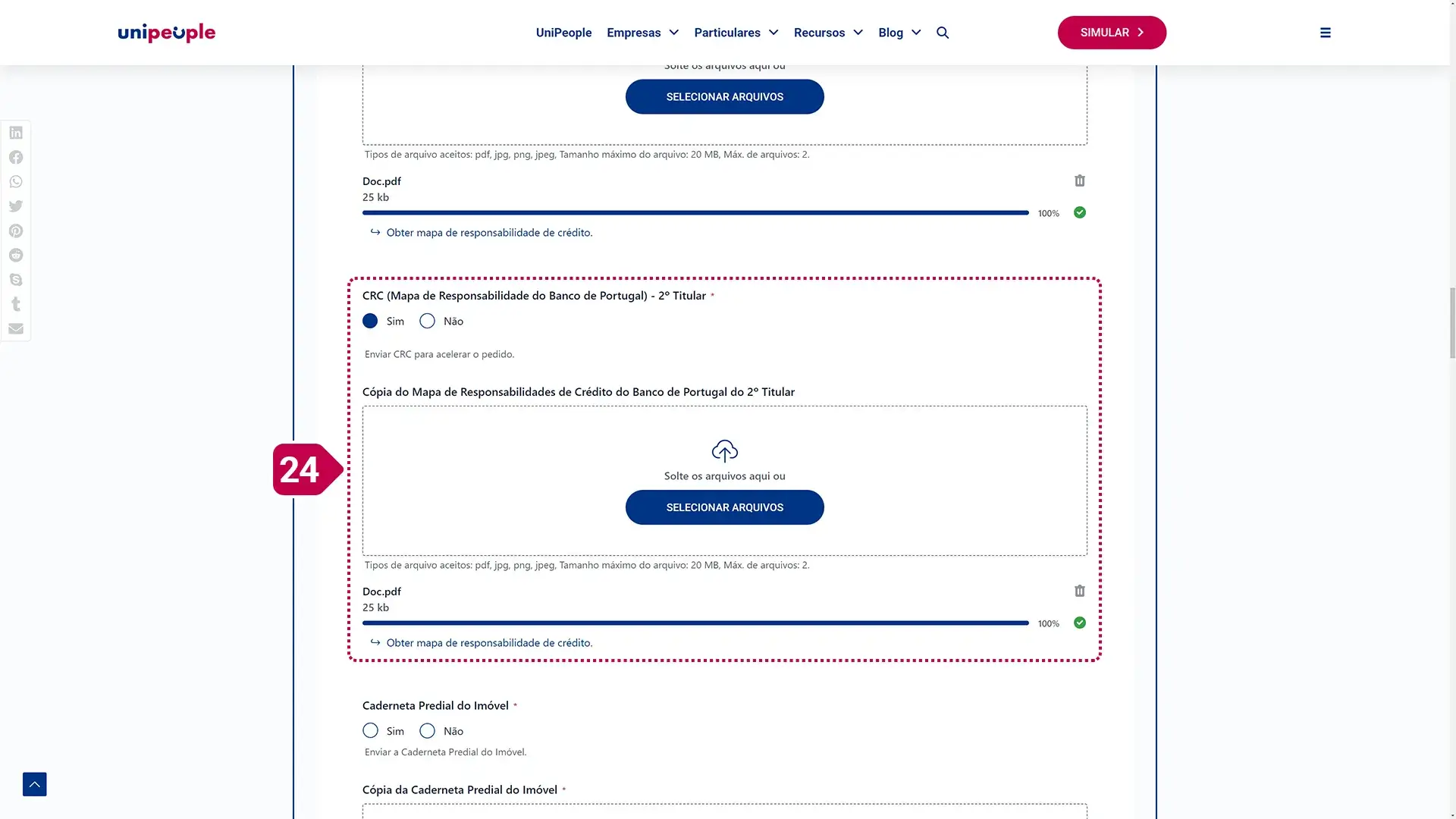- Documentação: possibilidade de anexar já documentos como Mapa de Responsabilidades ou recibos de vencimento, acelerando a análise.